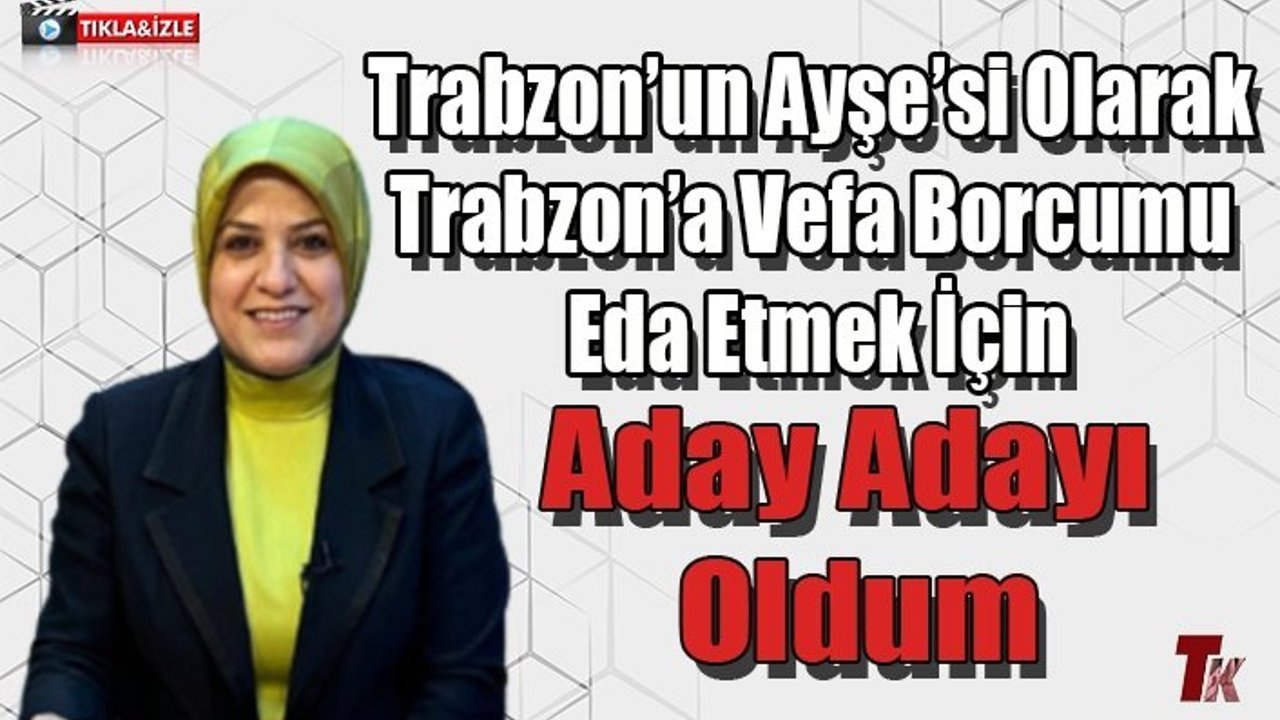 Ak Parti Trabzon Milletvekili aday adayı Ayşe Sula Köseoğlu Çay TV Trabzon Temsilcisi Halil İbrahim İleli’nin hazırlayıp sunduğu Trabzon’da Gündem programına konuk oldu. Canlı yayında neden aday adayı olduğunu açıklayan Köseoğlu bütün bu birikim ve donanımımla birlikte şehrime çok daha ciddi katkı yapma imkânı verecek. Trabzon’un Ayşe’si olarak Trabzon’a vefa borcumu katkı borcumu eda etmediğimi ve tamamlamadığımı düşünerek bu anlamda çok daha ciddi katkı verebileceğim için aday adayı oldum dedi.