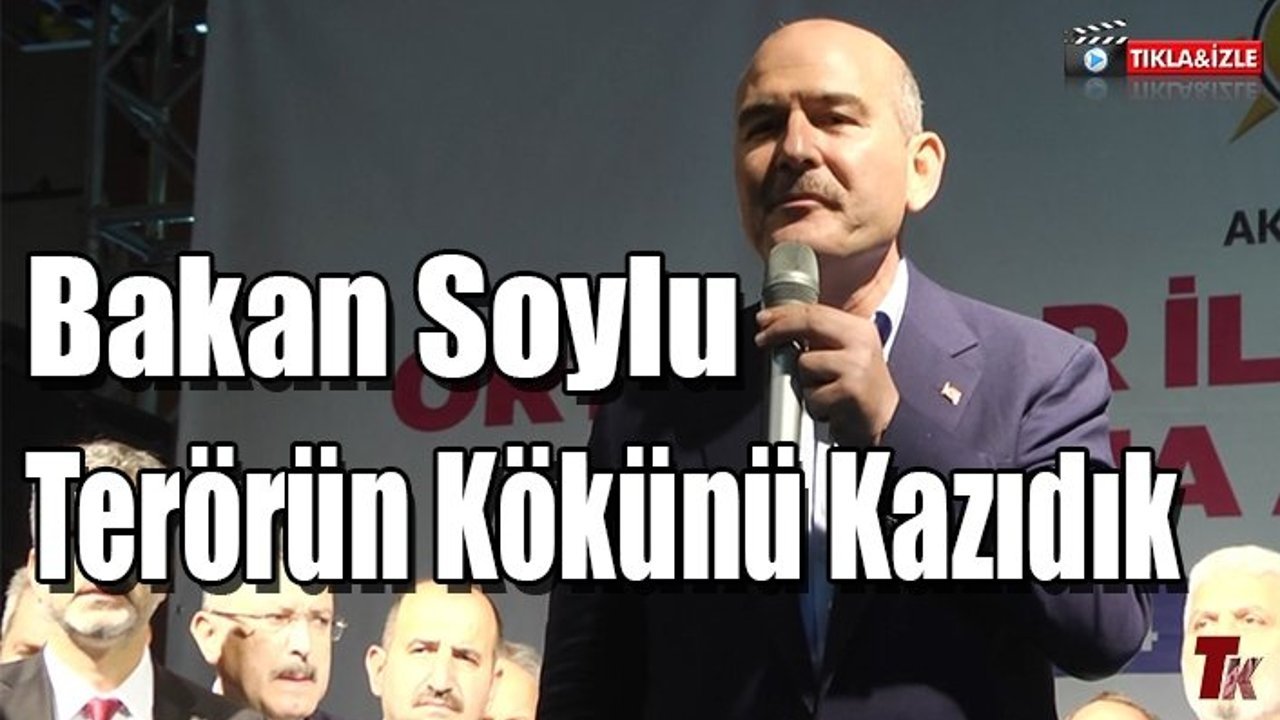 Soylu “ Bundan 5 yıl evvel PKK terör örgütü birlik ve kardeşliği bozmak için her türlü şeyi ortaya koyuyordu. Burada Eren evladımızı katlettiler. Şimdi size söylemek isterim: O Eren’in katillerini, Eren’in mezarı başında ters sallandırmak benim ahdimdi.. Ama devletimize yakışmaz, bize yakışmaz dedik. Tekmilim şudur: Karadeniz’de bugün bir tek terörist yok ve tertemiz Allah izniyle. Amanos’larda Allah’a hamdolsun bir tek terörist yok. Amanoslar tertemiz. Erzurum tertemiz, Bingöl tertemiz, Muş tertemiz, Elazığ tertemiz… Tendürek dağı tertemiz. Allah izin verecek Cumhuriyetin 1. Asrında yani 100. Yılında Allah’ın izniyle Cudi tertemiz olacak… Bu ülkede bir tek terörist kalmayacak” dedi.