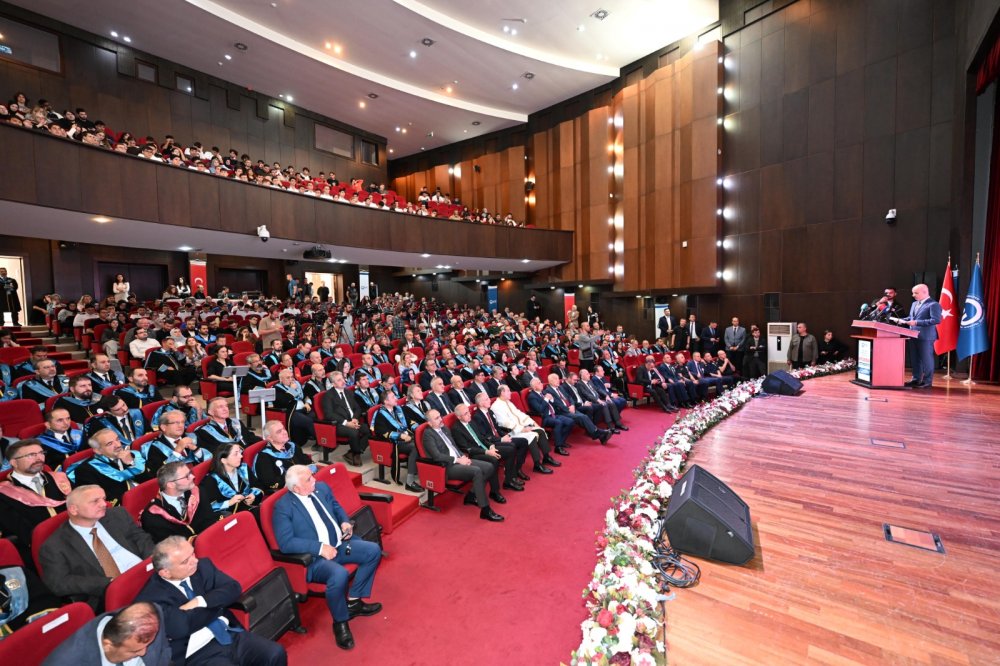 Tören, açılış konuşmasın da İlk sözü alan KTÜ Rektörü Prof. Dr. Hamdullah Çuvalcı açılış konuşmasında, “2025 yılı içerisinde 70. Kuruluş Yıl Dönümü’nü kutladığımız Üniversitemizin, eğitim-öğretim hayatına başlayışının da 63. yılını idrak ediyoruz. Türkiye’nin 4. ve Ankara’nın doğusunda kurulan ilk yükseköğretim kurumu olma payesi taşıyan Üniversitemiz aynı zamanda ülkemizin 2. teknik üniversitesidir…Üniversitemiz; bilim, teknoloji ve eğitimi daha ileriye taşıma hedefi doğrultusunda; akademik ve idari personelin özverili çalışmaları, öğrencilerin yüksek motivasyonu ve ‘KTÜ Camiası’nın ve şehrimizin güçlü desteği sayesinde birçok projeyi hayata geçirmiş; ulusal ve uluslararası düzeyde prestijli bir konuma erişmiştir. Üniversitemiz, bu büyük gayretlerin somut çıktısı olarak YÖK tarafından ‘Araştırma Üniversitesi’ olarak ilan edilmiş ve Yükseköğretim Kalite Kurulu tarafından da kurumsal olarak 5 yıl süre ile ‘Tam Akredite’ edilmiştir.” sözlerine yer verip dünyada, bilimde öncü bir yükseköğretim kurumu olma yolunda emin adımlarla ilerleyen KTÜ’de yapılan özgün bilimsel çalışmalar, “Yerli ve Milli Teknoloji Hamlesi”ne gerek akademisyenler gerek öğrenciler tarafından sağlanan katkılar, Türkiye’de ve dünyada yaşanan güncel gelişmeler hakkında değerlendirmelerde bulunarak KTÜ’nün kurumsal misyonu ve vizyonu çerçevesinde yürütülen Ar-Ge çalışmaları, Bilimsel Araştırma Projeleri, Üretim Merkezleri, devam eden ve planlanan çalışmalar, ticarileşme potansiyeline sahip oluşumlar, iç ve dış paydaşlar ile yapılan iş birliği protokolleri ve yapılan yatırımların önemine değindi.
