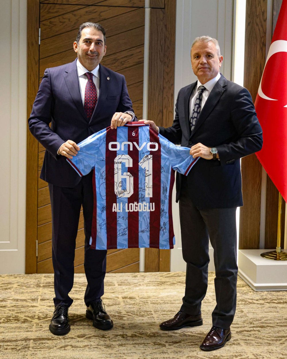 Trabzonspor Asbaşkanı Zeyyat Kafkas, Trabzon Emniyet Müdürü Ali Loğoğlu’na günün anısına isminin yazılı olduğu formamızı ve Trabzonspor rozetini takdim etti.