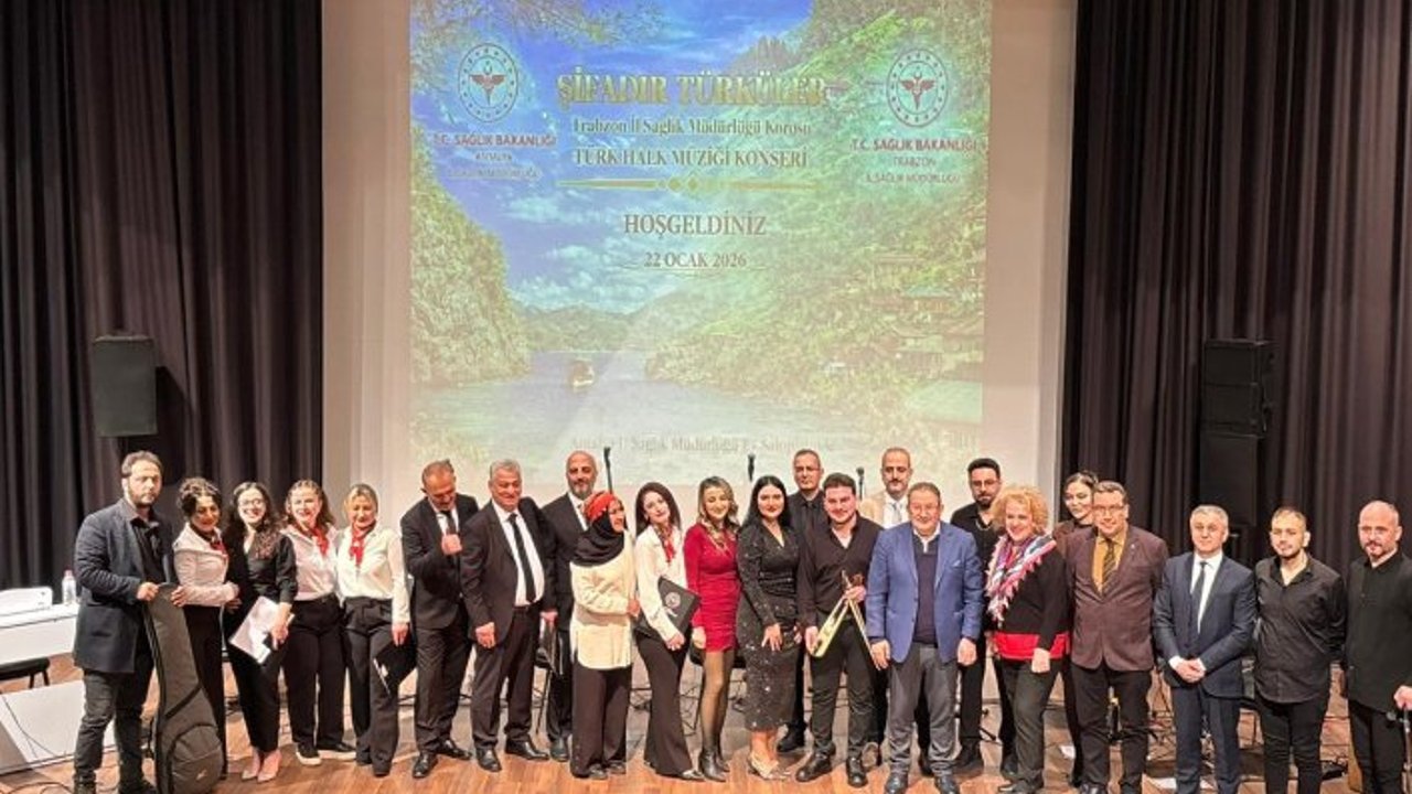 Trabzon İl Sağlık Müdürlüğü bünyesinde faaliyet gösteren Şifadır Türküler Türk Halk Müziği Korosu, Antalya İl Sağlık Müdürlüğü’nün ev sahipliğinde anlamlı bir konsere imza attı. Kültürel kaynaşmayı ve kurumsal dayanışmayı güçlendirmeyi amaçlayan konser, 22 Ocak 2026 tarihinde Antalya Eğitim ve Araştırma Hastanesi’nde, sağlık çalışanlarına yönelik olarak gerçekleştirildi.Trabzon İl Sağlık Müdürü Dr. Mehmet Topsakal’ın tensipleriyle hayata geçirilen etkinliğin proje koordinatörlüğünü Tuğba Çolak üstlenirken, koronun şefliğini Seray Odabaş yaptı. Programda, ağırlıklı olarak yöresel eserlerden oluşan Türk Halk Müziği repertuvarı seslendirildi.Sağlık çalışanlarının moral ve motivasyonuna katkı sunmayı hedefleyen konser, Trabzon ve Antalya illeri arasında kültürel bir köprü kurulmasına da vesile oldu. Etkinliğe Antalya İl Sağlık Müdürü Prof. Dr. Behzat Özkan, Antalya Eğitim ve Araştırma Hastanesi Başhekimi Doç. Dr. Orhan Aras ile hastane yöneticileri ve çok sayıda sağlık çalışanı katılım sağladı.