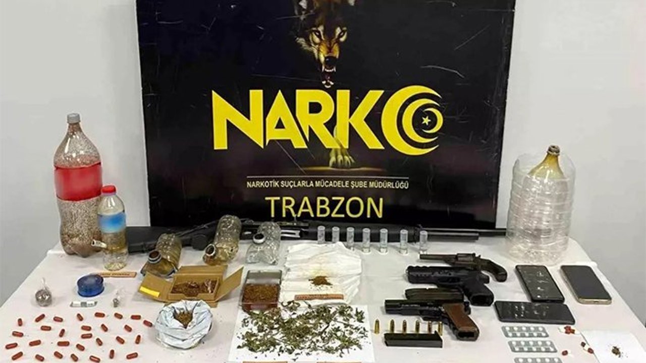 Trabzon Emniyet Müdürlüğü Narkotik Suçlarla Mücadele Şube Müdürlüğü ekipleri, Ortahisar, Arsin ve Of ilçelerinde gerçekleştirdiği geniş çaplı operasyonda 11 şüpheliyi gözaltına aldı. Operasyonda çeşitli türlerde uyuşturucu madde, silah ve uyuşturucu kullanımına yönelik düzenekler ele geçirildi.